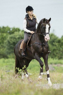 Zeer elegante gangen gecombineerd met veel scope en een goed karakter. Net begonnen met de vliegende wissels en doet ze al heel makkelijk.