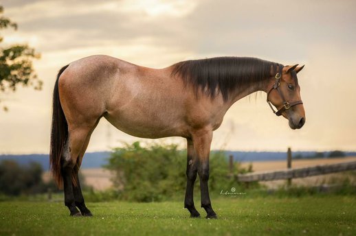 Langsam wird es Zeit, dass diese bildhübsche junge Quarter Horse Stute Beschäftigung bekommt und sucht daher ein neues Zuhause. Sie ist 2022 geboren, mit einem geschätzten Endmaß zwischen 152 - 154 cm bekommen. Valentine Feona Pin wächst artgerecht in kleiner Herde mit Familienanschluss auf. Kennt Offenstall und Box. Die Stute besitzt einen ganz lieben Charakter, ist sehr menschenbezogen, super brav aber auch neugierig. Valentine lernt sehr schnell und zeigt sich talentiert. Ist halfterführig, kennt das Fohlen ABC und leichte Bodenarbeit. Frei laufend kann man ihre super Bewegungen sehen. Daher auch gut geeignet für den Allroundbereich. Sie hat eine erstklassige Reininghorse x Ranchhorse Abstammung. Ihr Vater ist der 100 % Foundation gezogener QH Hengst MJM Saltys Blue Ezra. Die Mutter von Valentine ist eine McJac Flash Tochter aus einer Great Pine gezogenen Mutter. DQHA Futurity/Maturity nominiert. Wird später voraussichtlich eine tolle Partnerin für viele schöne Stunden im Sattel. Wird nur an Menschen mit Pferdeverstand von ihrer Züchterin abgegeben.