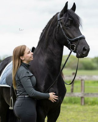 Brav, unkompliziert, liebenswert, mutig, leichtrittig. Derzeit Springen 1,35 und Dressur M schwer.