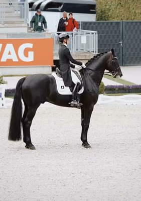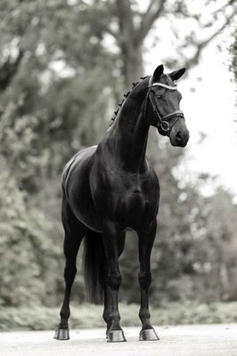 Dieser charmante schwarze Prinz hat ein sehr durchschnittliches Temperament und ist im Ring sehr aktiv. Er ist 10 Jahre alt und misst etwa 1,72 m.
