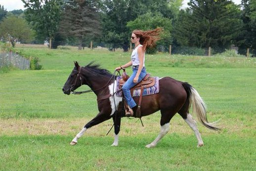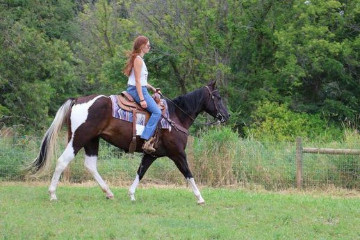 Oreo ist das Pferd der Wahl für jeden schüchternen Reiter, der sich einfach nur zurücklehnen und entspannen möchte. Sie ist eine wunderschöne schwarz-weiß lackierte Stute. Sie ist 7 Jahre alt und steht 15hhh. Oreo ist ein zuverlässiges Pferd, das sich mit Stil und Anmut trägt. Sie ist in allen Gangarten sehr gut gebrochen und nimmt beide Galoppführungen mühelos auf und kommt auch mit hervorragenden Breaks. Oreo hat einen schönen einhändigen Halszügel und bemüht sich, ihrem Reiter zu gefallen. Sie ist ausgiebig auf dem Trail geritten, auf der Straße gefahren und hat gezeltet. Lauter Verkehr, tiefes Wasser, Brücken, Rehe und Radfahrer sind für sie kein Thema. Oreo ist ein erfahrenes Wanderpferd, das alleine ausreitet, eine Gruppe führt oder gerne hinterherläuft. Wenn es eine Sache gibt, die dieses Mädchen weiß, dann ist es, wie sie sich gut um ihren Reiter kümmert. Oreo war auch auf lokalen Shows und hat die Flagge bei einigen Paraden getragen! Sie war ein Favorit für alle unsere Anfänger und sucht jetzt nach jemandem, den sie ihr Eigen nennen kann. Wenn Sie auf der Suche nach einem sicheren, ruhigen Pferd sind, das Sie auf den Trails genießen können, ist Oreo eine hervorragende Ergänzung für Ihre Familie.