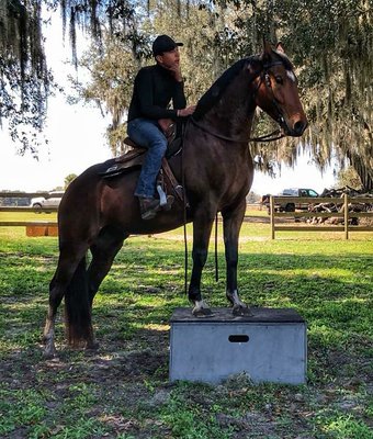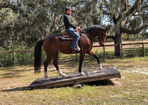 Jetzt ist er bereit, auf die Showbühne zu gehen und in den Hack-Kursen und über Zäune Schleifen nach Hause zu bringen. Lalo hat ein umfangreiches Flacharbeitstraining innerhalb und außerhalb der Arena absolviert. Er wird gehen, traben, am lockeren Zügel galoppieren für Jäger oder in einem Rahmen für die Dressur sammeln. Er lässt sich gut vom Sitz und Bein abfahren und hat ein weiches Maul. Lalo springt 2'3" und schult querfeldein. Er wird in diesem Jahr bereit sein, 2'3"-2'6" zu zeigen und ist für die Green Hunter Divisionen qualifiziert. An seinen schulfreien Tagen im Dressur- und Springsport reitet Lalo gerne Western und unternimmt Ausritte. Er beherrscht alle Western-Basics – einen tollen Stop, Back Up, Seitwärtsarbeit, Nachgeben der Vorder- und Hinterhand, etc. Er kann gut mit dem Verkehr umgehen und es macht ihm nichts aus, alleine loszufahren. Er wurde überall hin geschleppt, um Hindernisse auf dem Weg zu üben, Reitstunden zu nehmen und lokale Pferdeshows zu besuchen. Während Lalo über klares Jägerpotenzial verfügt, könnte er in der Dressur, im Reitsport, im Springen oder in der Vielseitigkeit problemlos glänzen. Er ist VIELSEITIG und könnte in jeder Disziplin glänzen! Lalo ist ein Liebling im Stall mit ausgezeichneten Manieren und einem liebenswürdigen, willigen Temperament. Er könnte leicht von einem erwachsenen Amateur- oder Juniorenfahrer in einem Programm mitgenommen werden. Er ist leicht zu laden, zu ziehen, zu wenden, zu baden, zu flechten, zu trimmen usw.