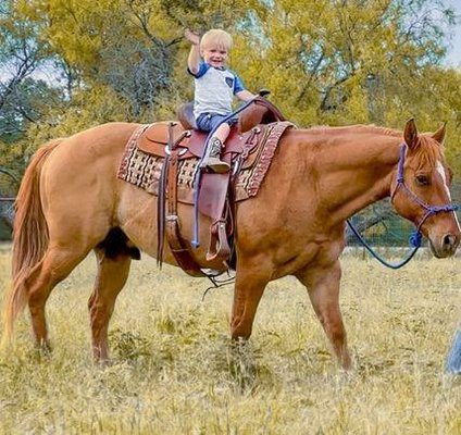 Er ist ein 10 Jahre alter, super kräftig gebauter, 14.3H, Quarter Horse Wallach. Wenn du die Zügel halten kannst, kannst du mit diesem Wallach lange kommen und wissen, dass du auf einem SICHEREN Reittier sitzt. Er wurde für die tägliche Rancharbeit in den Felsen und Mesquites eingesetzt. Sie brauchen keinen Arbeitspartner für den nächsten Tag, sondern nur eine sichere, zuverlässige Halterung? Kupfer ist immer noch dein Mann. Dies ist ein äußerst benutzerfreundlicher Wallach, der sehr komfortabel zu reiten ist. Egal, ob Sie Anfänger sind oder gerade erst eine Weile aus dem Sattel gestiegen sind, dieser Wallach wird sich um Sie kümmern. Er ist einhändig gebrochen und arbeitet gut mit dem Beindruck. Sein Trab und seine Lope sind sehr bequem und leicht zu sitzen, und er fliegt auch beide Richtungen mit Leichtigkeit. Wenn du einfach den Weg hinuntergehen willst, kannst du ihm einen Meter Zügel lassen und musst dir keine Sorgen machen, dass er das ausnutzt. Er ist großartig darin, in allen Gangarten ein gleichmäßiges Tempo zu halten und hat eher eine "Whoah"- als "Go"-Einstellung! Copper hat jeden zusammengepackt, von erfahrenen Cowboys bis hin zu den Jüngsten, die gerade lernen, was links und rechts bedeuten. Er ist ein super lustiger Kerl, da er bereit ist, das zu tun, was von ihm verlangt wird, es liebt, schwimmen zu gehen und sogar ohne Sattel im Halfter zu reiten - PERFEKT für das Sommerwetter, das wir erleben wollen, wenn Sie einen Sprung in den Teich machen möchten! Kupfer ist ein absoluter Gentleman auf dem Boden und Erdungsbinder für fast alles. Er steht geduldig für das Putzen/Satteln/Zaumzeugen, steht für dich zum Aufsteigen und hebt im Grunde auch seine Füße für dich auf. Er ist ein extrem netter Wallach mit einem riesigen Herzen, der einfach nur gefallen will. Kupfer bringt auch Wohlstand gut. Wir haben uns auf ihn eingelassen, nachdem er drei Wochen lang mit All-you-can-eat-Luzerne nach freier Wahl eingesperrt war, ohne sich vorher aufzuwärmen, und er hat sich nie auch nur hingeworfen