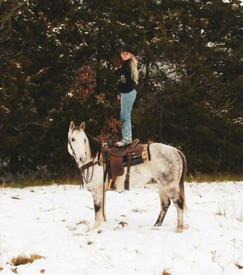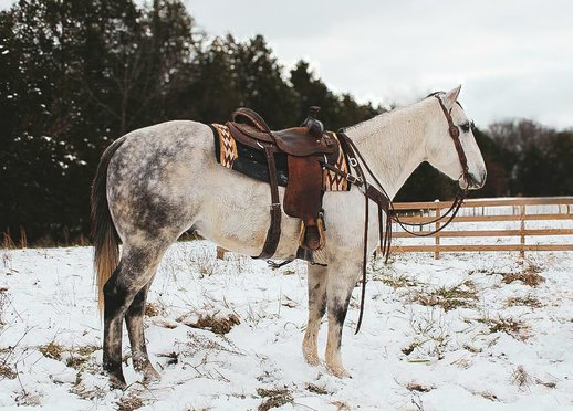 "Goose" ist ein 6 Jahre alter, wunderschöner, apfelgrauer Wallach, der perfekte 15 Hände groß ist. Ich habe nicht genug Gutes über dieses Pferd zu sagen. Ich habe jeden Moment genossen, in dem ich mit ihm zusammen war, und er war ein Liebling unter allen, die er traf! Goose hier hat alles, was man sich wünschen kann. Ein butterglatter einhändiger Halszügel, super geschmeidiger Schritt, Trab, Lofe in beide Richtungen. Er ist superweich im ganzen Körper und passt zur Seite, stoppt im Handumdrehen, dreht sich auf die Hinterhand und gibt dem Druck phänomenal nach. Was mir an Goose am besten gefällt, ist, dass er, obwohl er so pleite und weich ist, IMMER nach der richtigen Antwort sucht. Goose kümmert sich gut um seinen Reiter und passt sich an seine Bedürfnisse an, egal ob er Erfahrung hat oder nicht. Goose scheute sich hier nicht vor harter Arbeit. Er hat eine beträchtliche Menge an Tag abgearbeitet. Vom Fangen und Behandeln von Rindern über das Kontrollieren von Zäunen, die Arbeit auf den Viehhöfen, das Erteilen von Unterricht, Ausritte, das Drehen einiger Ochsen aus der Box und sogar die gute alte Spaßshow. Er hat bewiesen, dass er in allen möglichen Situationen zuverlässig ist! Die Gans hier ist eine, die man im tiefsten Winter von der Weide ziehen und ohne Sorgen oder Aufregung aufsteigen kann. Er wird jedes Mal das gleiche Pferd sein. Goose macht auch super viel Spaß beim Trailreiten! Er ist nicht gruselig oder kumpelsauer. Goose ist sehr trittsicher und überquert alles, was Sie verlangen, wird sich entspannen und wird gerne jede Straße oder jeden Weg hinuntertanzen, den Sie wählen! Gans eignet sich hervorragend zum Fangen, Anfassen, Laden, Beschlagen und Baden. Er ist sehr einfach zu halten und boxt gut oder macht sich toll auf der Weide mit seinen Freunden! Obwohl er so gut erzogen ist, habe ich auch festgestellt, dass ich überall, wo ich hinkomme, Komplimente dafür bekomme, wie gut er aussieht. Er ist super formschön und auf Langlebigkeit ausgelegt, alles in den schönsten Apfelgrauton gehüllt, den Sie auf einem finden werden! Das ist so ein netter Wallach mit viel Potenzial, mit dem man absolut alles auf der Welt machen kann. Du willst ihn nicht verpassen.