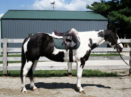 "Stormy" ist ein auffälliger 11 Jahre alter schwarz-weiß lackierter Wallach. Er ist stämmig und steht 15 Hände. Er ist so vielseitig wie es nur geht, egal ob Sie ein Wettkampfpferd, ein erfahrenes Wanderpferd oder einfach nur ein sicheres Pferd suchen, das die ganze Familie genießen kann!