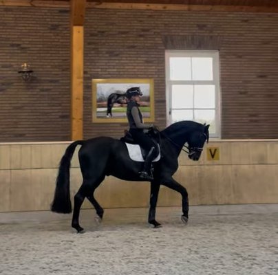 Er ist gut angeritten und hochtalentiert in der Dressur mit einem fantastischen Bewegungsablauf und hervorragenden Dressureigenschaften. Er ist bereit, in der kommenden Saison mit seinem nächsten idealen Reiter anzutreten. Vorstellung im Trainingsring. Er ist bereit für Dressurpferdeprüfungen der Klasse S.