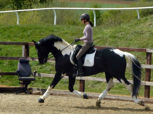 Wallach mit auffälligem Paint Coat. Geboren am 16. Dezember 2013, hat sich dieser talentierte Paint-Wallach zu einem vielseitigen und athletischen Allrounder entwickelt.
