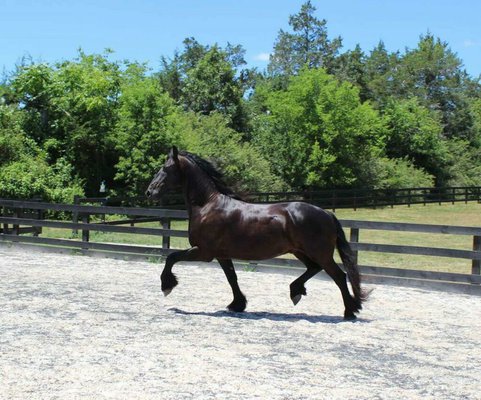 Santino ist ein 8 jähriger Friesenwallach. Er ist ein absolutes Juwel, trainiert derzeit die 3. Stufe Dressur und ist auch zum Fahren ausgebildet. Seine Blutlinien sind ausgezeichnet und haben sich in seiner früheren Ausbildung hervorgetan, was ihm die AA-Bezeichnung und das STER-Prädikat einbrachte. Santino war seit seiner Ankunft immer wieder im Training. Jeder Trainer hat ihn geliebt und er genießt jede Herausforderung, die ihm gestellt wird. Er versteht sich gut mit anderen Pferden, super für Hufschmied und Tierarzt, KEINE LASTER und insgesamt ein perfekter Gentleman. Santino hat einen großartigen Verstand und ist bestrebt, zu gefallen! Santino könnte auch ein großartiger Fuchsjäger sein, Sattelsitz nehmen oder einfach nur aushacken!