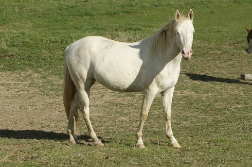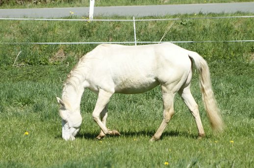 GM Sugar O Lena Star - eine bildhübsche Paint Horse Stute, geboren 2022, in der außergewöhnlichen Farbe Perlino Frame Overo mit Bald Face und zwei blauen Augen. Sie ist genetisch getestet (A/A, E/e, D/nd2, CR/CR, LWO/n) und wird ein Endmaß von etwa 150 cm erreichen. Diese junge Dame überzeugt mit toller Farbe, korrektem Gebäude, solidem Fundament und rundum gesundem Körperbau. Sie ist 6-Panel inklusive MHYM n/n getestet, schmiede- und verladefromm, regelmäßig entwurmt und geimpft sowie aktuell unbeschlagen. Seit dem Fohlenalter lebt sie im Herdenverband, durfte in Ruhe aufwachsen und ist dadurch bestens sozialisiert. Sie kennt 24/7 Weidehaltung ebenso wie Box mit Paddock. Im Umgang zeigt sie sich sehr menschenbezogen, brav, neugierig und ausgeglichen. Sie ist cool und nicht schreckhaft, lässt sich gut händeln, muss aber gelegentlich freundlich überzeugt werden, wenn es um die Arbeit geht. Sie lernt schnell, hat Freude daran, Neues zu entdecken, und zeigt sich insgesamt als unkomplizierte, angenehme Jungstute mit Potenzial. Sie ist halfterführig, kennt das Fohlen-ABC und ist mit verschiedenem Gelände vertraut, darunter befahrene Straßen, Autos, Traktoren und LKW. Dank ihrer guten Allround-Abstammung ist sie besonders interessant für Reiter, die sowohl im Sport als auch in der Freizeit aktiv sind. GM Sugar O Lena Star ist ein rundum gelungenes Pferd mit gutem Gebäude, ansprechender Optik und tollem Charakter - ein echter Hingucker mit Herz.
