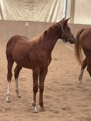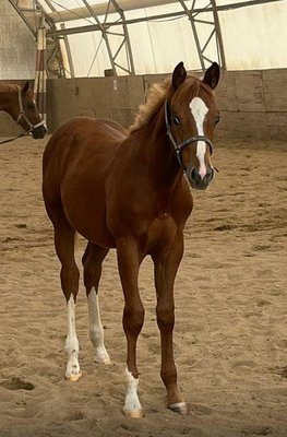 Hot Nite Invitation - ein bildhübscher Quarter Horse Hengst, geboren am 13. März 2025. Mit seiner eleganten sorrel-Farbe, seinem korrekten Gebäude und der harmonischen Bemuskelung ist er ein echter Blickfang. Er wird voraussichtlich ein Endmaß von etwa 160 cm erreichen und damit später auch größere Reiter gut abdecken können. Seine AQHA-Papiere liegen bereits vor. Dieser junge Hengst wächst artgerecht im Herdenverband auf und kennt sowohl Paddock-Box als auch Weide. Er ist altersentsprechend geimpft, regelmäßig entwurmt und an Tierarzt sowie Hufschmied gewöhnt. Hot Nite Invitation zeigt sich stets brav, ruhig und gelassen, dabei aber aufmerksam, lernfreudig und charakterstark. Sein menschenbezogener, lieber Charakter macht den täglichen Umgang mit Rocky zu einer Freude. Auch unter Bewegungsaspekten weiß dieser Youngster zu überzeugen: Er zeigt bereits jetzt schöne, taktreine Grundgangarten und bringt das Potenzial für eine erfolgreiche Laufbahn im Sport oder auf Turnieren mit. Dank seiner erstklassigen Pleasure- und Allround-Abstammung (Hotroddin Invitation x Nite Chip) eignet er sich ebenso hervorragend als zuverlässiger Freizeitpartner. Hot Nite Invitation ist DQHA Futurity startberechtigt, kennt das Fohlen-ABC und ist selbstverständlich halfterführig. Mit seinem hervorragenden Exterieur, seinem angenehmen Wesen und seinem vielseitigen Talent ist er ein echtes Versprechen für die Zukunft - ganz gleich, ob als Showpferd oder treuer Freizeitkamerad.