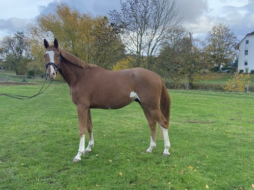 Er wurde behutsam anlongiert , läuft in allen 3 gga ganze Bahn . Gelände kennt er auch schon. Ein richtiger alter Hase beim anreiten .Beim Freispringen macht er auch einen sehr guten Job und macht ihn auch viel Freude .