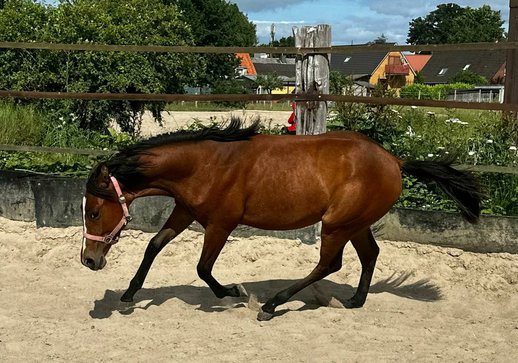 Rain Smart Dragon - wundervolle Quarter Horse Stute, geboren 6.24 mit einem geschätzten Endmaß von 150 cm, sucht ein 5-Sterne Zuhause. Dieses junge Talent bringt alles mit, was man sich von einem zukünftigen Verlasspferd wünscht. Sie ist absolut aufgeklärt und meistert das Fohlen ABC mit Bravour. Rain kennt Kinder, Hühner, Hunde, Katzen, Autos und diverse Maschinen. Immer super interessiert und nie schreckhaft oder ängstlich. Die Stute hat ein unglaubliches Vertrauen in den Menschen. Auch in der Herde benimmt sie sich vorbildlich und kommt mit Großen/Kleinen/Alten und Gleichaltrigen super zurecht. Rain ist sehr aufgeschlossen und sozial. Anbinden, abduschen, unterm Bauch herkrabbeln, Hänger fahren - nichts bringt sie aus der Ruhe. Einfach ein Traum Jährling, die für alles zu haben ist. Rain ist bestens geeignet für Reiter, die einen vielseitigen Partner im Westernbereich suchen. Egal ob Trail oder Reining oder Allround - sie hat das Potenzial, in verschiedenen Disziplinen zu glänzen. Ihr Vater ist Wee Hollywood Dragon und Rains Mutter ist Footworks Finest gezogen . Wenn Sie auf der Suche nach einem Nachwuchspferd mit hervorragenden Anlagen und einem freundlichen Wesen sind, dann könnte diese QH Stute genau die richtige sein.