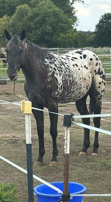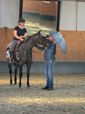 Diese bildhübsche Stute in Appaloosa Optik mit der außergewöhnlichen Black-Blanket-Färbung wurde 2022 geboren und misst aktuell etwa 156 cm. Sie verfügt über einen Equidenpass und besticht durch ihr korrektes Gebäude sowie einen besonders lieben und menschenbezogenen Charakter. Die junge Stute befindet sich noch in der Entwicklung, zeigt sich jedoch bereits jetzt sehr cool, verspielt und lernwillig. Sie ist absolut geräuschunempfindlich, verschmust und zeigt sich im täglichen Umgang sowie bei Tierarzt und Hufschmied stets brav und unkompliziert. Sie kennt sowohl Boxenhaltung als auch Weidegang, ist regelmäßig entwurmt und geimpft und wurde mit viel Geduld und Ruhe ausgebildet. Aktuell befindet die Stute sich im Beritt und geht artig Schritt und Trab unter dem Sattel. Auch an der Doppellonge und bei der Bodenarbeit arbeitet sie motiviert mit. Ihre taktreinen, ansprechenden Gangarten machen sie zu einer interessanten Nachwuchspartnerin für vielseitige Einsätze - sei es im Pleasure, Ranch Riding oder im Trail. Diese junge Dame ist der perfekte Partner für Reiter, die den Weg vom Jungpferd zum verlässlichen Freizeit- oder Turnierpartner gemeinsam gehen möchten. Sie bringt das Potenzial und die Einstellung mit, um ein echter Allrounder zu werden.