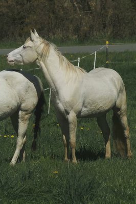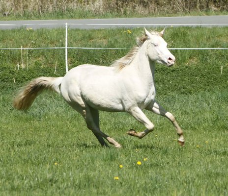GM Sugar O Lena Star ist eine bildhübsche Paint Horse Stute, geboren 2022, in der außergewöhnlichen Farbe Perlino Frame Overo mit Bald Face und zwei blauen Augen. Sie ist genetisch getestet (A/A, E/e, D/nd2, CR/CR, LWO/n) und wird ein Endmaß von etwa 150 cm erreichen. Diese junge Dame überzeugt mit toller Farbe, korrektem Gebäude, solidem Fundament und rundum gesundem Körperbau. Sie ist 6-Panel inklusive MHYM n/n getestet, schmiede- und verladefromm, regelmäßig entwurmt und geimpft sowie aktuell unbeschlagen. Seit dem Fohlenalter lebt sie im Herdenverband, durfte in Ruhe aufwachsen und ist dadurch bestens sozialisiert. Sie kennt 24/7 Weidehaltung ebenso wie Box mit Paddock. Im Umgang zeigt sie sich sehr menschenbezogen, brav, neugierig und ausgeglichen. Sie ist cool und nicht schreckhaft, lässt sich gut händeln, muss aber gelegentlich freundlich überzeugt werden, wenn es um die Arbeit geht. Sie lernt schnell, hat Freude daran, Neues zu entdecken, und zeigt sich insgesamt als unkomplizierte, angenehme Jungstute mit Potenzial. Sie ist halfterführig, kennt das Fohlen-ABC und ist mit verschiedenem Gelände vertraut, darunter befahrene Straßen, Autos, Traktoren und LKW. Dank ihrer guten Allround-Abstammung ist sie besonders interessant für Reiter, die sowohl im Sport als auch in der Freizeit aktiv sind. GM Sugar O Lena Star ist ein rundum gelungenes Pferd mit gutem Gebäude, ansprechender Optik und tollem Charakter - ein echter Hingucker mit Herz.