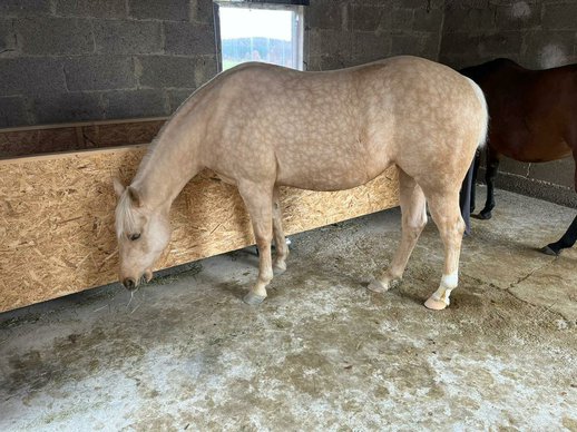 Ein echter Eyecatcher mit Charakter, Qualität und Zukunftspotenzial! Mit ihrer Palominofarbe, ihrem kompakten, kräftigen Körperbau und ihrer sehr guten Bemuskelung zieht Mobsters Trashya sofort alle Blicke auf sich. Die am 18.04.2022 geborene Quarter Horse Stute misst aktuell etwa 145 cm , ist korrekt gebaut, gesund und überzeugt mit einem hochwertigen Reiningpedigree (HF Mobster x Gunnatrashya). Beste Voraussetzungen für eine erfolgreiche sportliche Zukunft oder einen anspruchsvollen Freizeitpartner. Maggie besitzt einen lieben, menschenbezogenen und verschmusten Charakter. Sie ist zutraulich, brav und im täglichen Umgang unkompliziert, braucht jedoch klare Regeln und eine konsequente, faire Förderung. Als intelligente junge Stute möchte sie regelmäßig gearbeitet und geistig wie körperlich gefordert werden. Unregelmäßige Arbeit macht sie auf Dauer nicht glücklich. Aufgrund ihres Alters und Ausbildungsstandes ist sie daher kein Anfängerpferd, sondern ideal für ambitionierte Reiter, die Freude daran haben, ein talentiertes Nachwuchspferd weiter auszubilden. Die Stute ist leicht angeritten und war bereits mehrere Male im Gelände unterwegs. Tierarzt und Hufschmied kennt sie selbstverständlich. Sie lebt aktuell in Robusthaltung im Offenstall, kennt die Herdenhaltung, ist geimpft und regelmäßig entwurmt. Maggie ist 6-Panel n/n über ihre Eltern. Mit ihren guten Gangarten, ihrer Motivation und ihrem starken Fundament bringt sie viel Potenzial für den Turniersport mit. Sie ist in das EWU Jungpferdeprogramm einbezahlt. Ebenso ist eine doppelte Registrierung (AQHA und APHA) möglich. Ob als zukünftiges Showpferd oder als hochwertiger Freizeitpartner mit Perspektive - dieser Youngster ist ein echtes Versprechen für die Zukunft.