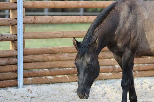 Sie war drei Jahre auf der Fohlenweide mit gemischter Herde jeden Alters.