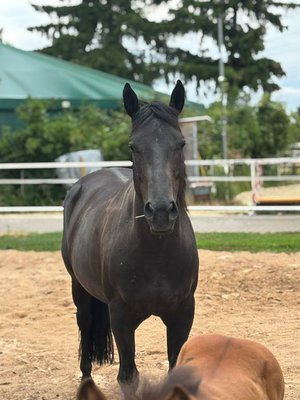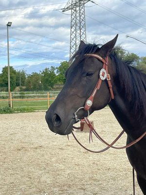 Solide berittene Stute. In allen Gangarten herrlich zu reiten. Reagiert auf Stimme und Blick sehr fein.