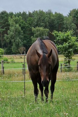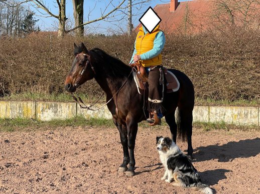 Sally ist eine hübsche, kompakte und kräftige Quarter Horse Stute, geboren 2011, mit einem Stockmaß von ca. 151 cm. Die bayfarbene Stute besitzt einen Pass, jedoch keine Papiere. Sie überzeugt vor allem durch ihren lieben, menschenbezogenen Charakter. Sally ist sensibel, sehr brav im Umgang und immer händelbar. Die Stute ist kinderlieb, kennt den Umgang mit Kindern und eignet sich daher auch sehr gut für Jugendliche. Durch ihre schnelle Auffassungsgabe lernt sie gerne und ist vielseitig einsetzbar. Aktuell lebt Sally im Offenstall in der Herde in Robusthaltung. Sie kennt jedoch auch Boxenhaltung, Weide, Wald, Wassergräben und verschiedene Alltagssituationen. In der Herde ist sie sehr verträglich und kommt auch mit Wallachen problemlos klar. Zudem ist sie leichtfuttrig und kann auch jederzeit alleine bleiben. Gesundheitlich steht sie gut da. Sally ist regelmäßig geimpft und entwurmt. Zurzeit läuft sie barhuf, im Gelände wird sie mit Hufschuhen geritten. Sie ist geländesicher, kennt Ralleys und lässt sich in wenigen Sekunden verladen. Sally besitzt eine sehr gute Westernausbildung in Richtung Allround, insbesondere in Ranch Riding und Ranch Rail. Sie wurde bereits erfolgreich geshowt und zeigt sich auch auf Turnieren ruhig und unkompliziert. Zusätzlich war sie fünf Monate im Profitraining und hat fortlaufend Unterricht erhalten. Mit ihren guten Bewegungen, ihrem ausgeglichenen Wesen und ihrer Vielseitigkeit ist Sally die ideale Partnerin für ambitionierte Freizeitreiter, die Abwechslung im Sattel schätzen. Gleichzeitig ist sie auch eine tolle Wahl für Jugendliche, die ein zuverlässiges und gut ausgebildetes Pferd suchen.