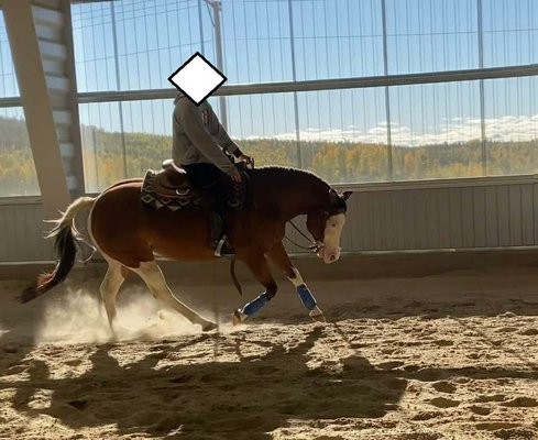 Gunnerbelle ist eine bildhübsche Quarter Horse Stute, geboren im Jahr 2015. Sie präsentiert sich in der besonderen Farbe Bay Splash (SW1 + SW2) und fällt zusätzlich durch ihre zwei blauen Augen ins Auge. Mit einem Stockmaß von ca. 147 cm ist sie kompakt gebaut und dabei korrekt und harmonisch im Exterieur. Genetisch ist sie 5-Panel n/n getestet. Charakterlich überzeugt Gunnerbelle auf ganzer Linie. Sie ist sehr lieb, menschenbezogen und zeigt sich stets freundlich sowie angenehm im Umgang. Durch ihre unkomplizierte Art ist sie einfach zu händeln und auch für Anfänger geeignet. Unter dem Sattel zeigt sie sich brav und zuverlässig, besonders im Gelände. Im täglichen Handling ist sie bestens erzogen. Sie kennt sowohl Hufschmied als auch Tierarzt, geht problemlos auf den Anhänger und ist sowohl an Herdenhaltung als auch an die Box gewöhnt. Besonders hervorzuheben ist ihre Qualität als Zuchtstute. Gunnerbelle verfügt über eine erstklassige Reining-Abstammung (Colonels Lone Gun x Roseable v. Inwhizible) und hat sich bereits als hervorragende Mutter bewiesen. Sie bringt Fohlen in sehr guter Qualität und gibt ihre positiven Eigenschaften zuverlässig weiter, sodass ihre Nachkommen sich als tolle, leistungsbereite Pferde entwickeln. Aktuell ist sie tragend für das Jahr 2026 von MS Gunners Cashflow, einem homozygoten Splash 1 Hengst. Gunnerbelle wurde geritten und besitzt eine solide Reining-Ausbildung und ist total brav im Gelände. Wird jedoch als Zuchtstute abgegeben. Sie ist ein echtes Juwel für die Zucht und eine wertvolle Bereicherung für jeden Zuchtbestand.