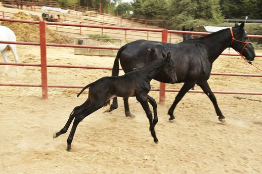 STUNNING BLACK MARE WITH HER FOAL. PRE