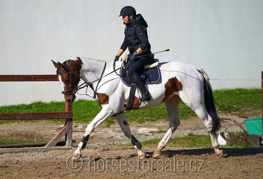 Gangster is an attractive gelding with combination of jumping and dressage blood. Due to lack of time without show experience so far, but has solid basic education, has been ridden by a lady, is willing to learn and to work. Safe to ride in the trail, on flatwork very cooperative and comfortable to sit, not looky or spooky. Gangster has never jumped under saddle so far, but he shows nice jump in freejumping line. Sound (x-rays available), no bad habits, suitable for amateurs.