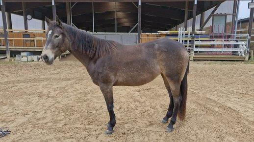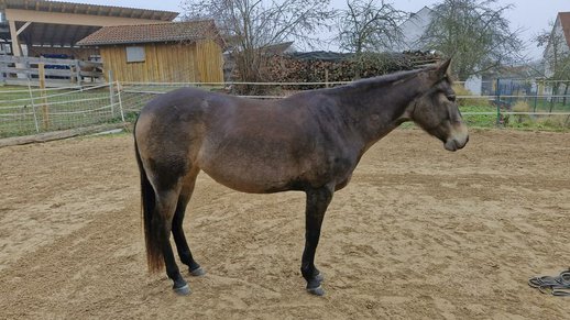 Miss Sinny Bar - eine im Juni 2021 geborene buckskinfarbene Quarter Horse Stute mit einem Stockmaß von etwa 150 cm. Sie ist elegant, sportlich gebaut und gehört nicht zu den Gewichtsträgern, überzeugt aber durch ihre harmonische Entwicklung und ihre natürliche Athletik. Trotz eines angebrochenen Dornfortsatzes im Alter von zwei Jahren, der laut Tierarzt vollständig ausgeheilt ist, ist sie heute gesund, voll belastbar und wird regelmäßig geritten. Gerne kann der Tierarzt dazu befragt werden. Sie ist 5-Panel n/n über die Eltern, regelmäßig geimpft, entwurmt und zahnärztlich kontrolliert, läuft barhuf und war stets unter professioneller Sattelkontrolle. Aktuell lebt sie im Offenstall mit 24-Stunden-Heuversorgung und Weidegang und zeigt sich dort ranghoch innerhalb der Herde. Im Umgang ist sie ein sehr liebes, menschenbezogenes und verschmustes Pferd, das gleichzeitig willensstark, neugierig und manchmal etwas ungeduldig ist. Sie möchte immer gefallen, lernt schnell und zeigt viel Eifer sowie Offenheit für neue Aufgaben. Da sie noch viel hinterfragt und eine klare, faire Führung braucht, ist sie kein Anfängerpferd. Miss Sinny Bar wurde schonend und vielseitig nach dem Pro-Ride-Konzept ausgebildet. In der Halle läuft sie sicher in Schritt, Trab und Galopp und geht sowohl alleine als auch in der Gruppe zuverlässig ins Gelände. Besonders in der Freiarbeit sowie in der Boden- und Longenarbeit zeigt sie großes Talent. Durch ihre sehr gute Reining-Abstammung (Einsteins Revolution x Bueno Swiss Doc) ist sie nicht nur als Nachwuchspferd für ambitionierte Freizeitreiter interessant, sondern perspektivisch auch für die Zucht. Der passende Sattel kann auf Wunsch mit erworben werden. Da es sich um keinen Notverkauf handelt, wird großer Wert auf ein geeignetes Zuhause gelegt, in dem diese talentierte Stute weiter gefördert und abwechslungsreich beschäftigt wird. Miss Sinny Bar bringt alles mit, was man sich von einem jungen, motivierten Pferd wünscht, das gemeinsam mit seinem Menschen wachsen möchte.