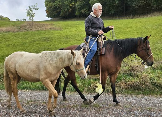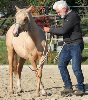 Peppy Doc King Maxen - Dieser 2024 geborene Palomino (Endmaß ca. 148 cm) mit traumhafter weißer Mähne und Schweif ist ein absoluter Eyecatcher - kompakt, korrekt gebaut und mit vielversprechenden Proportionen. Ein Nachwuchspferd, das nicht nur durch seine Optik, sondern auch durch seinen tollen Charakter überzeugt. Er ist menschenbezogen, freundlich, aufmerksam und lernwillig. Im täglichen Umgang zeigt er sich artig, entspannt und unkompliziert. Herausforderungen begegnet er mit Mut und Neugier und lernt schnell. Schon jetzt lässt er sich problemlos verladen und geht ruhig und gelassen an der Hand ins Gelände. Der Hengst wächst gesund und robust im Offenstall in gemischter Herde auf und wird liebevoll und mit viel Sachverstand an seine Aufgaben als Reitpferd herangeführt - nach den Prinzipien des Natural Horsemanship, Schritt für Schritt und ohne Zeitdruck. Die Farbgenetik (e/e, A/a, CH/ch) macht ihn nicht nur farblich besonders interessant, sondern eröffnet auch züchterisch Potenzial. Peppy ist altersgemäß geimpft und regelmäßig entwurmt. Seine Abstammung lässt keine Wünsche offen: Top Cuttinglinien (Enkel von Peptoboonmal) väterlicherseits treffen auf ausgezeichnete Reiteigenschaften mütterlicherseits - eine ideale Kombination für Sport, Turnier und Freizeit. Der Hengst ist DQHA sowie Regional-Futurity startberechtigt und bringt alles mit, um in Zukunft ein vielseitig einsetzbares Reitpferd mit Charme, Talent und Herz zu werden.