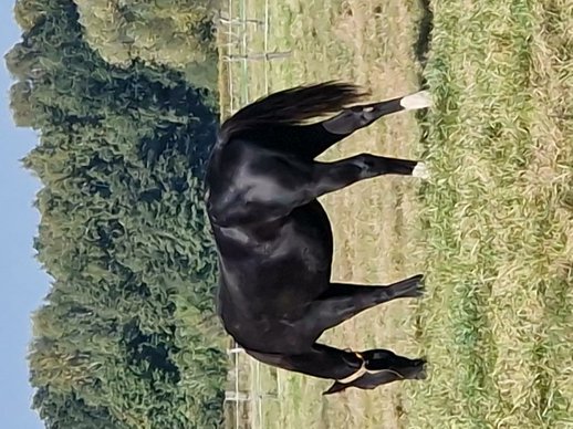 Treats N Diamonds - ein bildschöner, junger Quarter Horse Hengst mit hervorragendem Fundament, kräftigen Gelenken und sehr guter Bemuskelung. Er zeigt sich bereits jetzt weit entwickelt und gesund. Sein korrekter Körperbau, sein harmonisches Erscheinungsbild und seine tolle Farbe (black) machen ihn zu einem echten Eyecatcher mit Zukunftspotenzial - sowohl im Sport als auch im Freizeitbereich. 2024 geboren mit einem Endmaß von ca. 152 cm. Tristan wächst artgerecht in einer Hengstaufzucht auf und ist bestens sozialisiert. Er ist freundlich, neugierig, menschenbezogen und lernwillig. Tierarzt und Hufschmied kennt er bereits, ist halfterführig, altersgemäß geimpft und entwurmt. Seine Abstammung lässt keine Wünsche offen: Er entstammt einer erstklassigen Reining-Linie und ist NRHA Germany einbezahlt. Tristan ist ein Sohn von One Shiney Treat, ein Sohn vom 10,2 Mio Dollar Sire Shining Spark. One Shiney Treats Mutter, HAGANDAZ, ist eine Money earning& producing GRAYS STARLIGHT-Tochter. Sie gewann $49,289 in NCHA & NRCHA Events, und produzierte erfolgreiche Performance Nachzucht, mit insgesamt über $65.616 (NRHA, NCHA& NRCHA). Tristans Mutter, Miss Tiffany Chic, wurde erfolgreich geshowt und ist eine Puro Chic Tochter. Tristans Geschwister aus der gleichen Mutterlinie konnten sich bereits erfolgreich im Reining-Sport (Open) beweisen. Ein aktueller 6-Panel-Test liegt über die Eltern und zusätzlich durch einen eigenen Test vor - er ist N/N. Treats N Diamonds wird mit AQHA-Papieren und Equidenpass abgegeben. Dank seiner erstklassigen Reining/Allround-Abstammung und der NRHA Germany Einzahlung stehen ihm alle Wege offen - sei es im Sport, auf Turnieren oder als vielseitiger Freizeitpartner.