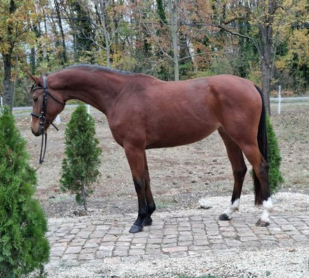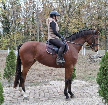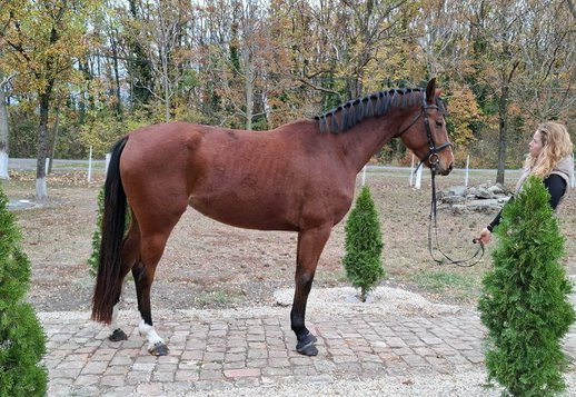 Vaccinations and blood tests are up to date. She measures 167–168 cm at the withers and is registered as a Hungarian Sport Horse.