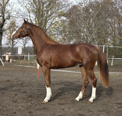 A picturesque, beautiful, three-year-old modern sport stallion with outstanding potential.