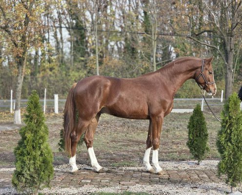 He is completely healthy, with correct, clean legs and an excellent general conformation. He has a small, refined noble head and a large, long, elegantly arched neck, which gives him a very modern and attractive appearance.