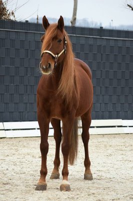 Zum Verkauf steht ein bildhübscher Pura Raza Española x Lusitano Wallach, geboren 2017, mit einem Stockmaß von ca. 163 cm und in der schönen Farbe Fuchs. Er ist ein echter Eyecatcher mit korrektem, kompaktem Gebäude und befindet sich in einem sehr guten Gesundheitszustand. Top Röntgenbilder liegen vor, er ist regelmäßig geimpft und entwurmt und kennt Boxenhaltung mit Paddock. Charakterlich ist er ein absolutes Goldstück: sehr menschenbezogen, unheimlich verschmust, superlieb im Umgang sowie freundlich, unerschrocken, neugierig und aufgeschlossen. Im täglichen Handling ist er jederzeit angenehm und unkompliziert. Unter dem Sattel überzeugt er mit sehr guten Grundgangarten, insbesondere mit einem außergewöhnlich starken Trab. Er ist sehr talentiert, lernwillig und vielseitig ausgebildet, lässt sich ganz toll versammelt reiten und bringt unheimlich viel Spaß. Er beherrscht fliegende Wechsel, alle Seitengänge, Passage und Piaffe und zeigt sich auch im Gelände superartig und zuverlässig. Befindet sich zur Zeit in Beritt. Dieses wunderschöne und bestens ausgebildete Pferd eignet sich ideal für den motivierten Reiter, der ein besonderes Pferd für Dressur, Working Equitation oder den gehobenen Freizeitsport sucht. Ein echtes Traumpferd mit großem Potenzial und bestem Charakter.