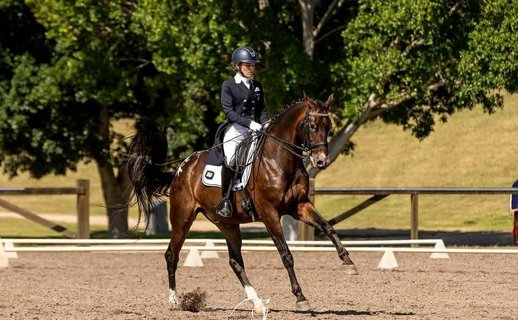 He is currently trained and competing at Fourth Level and is steadily progressing toward Prix St. Georges. The pieces are in place: solid lateral work, confirmed flying changes, and developing collection. His training has been thoughtful and unhurried, allowing him to gain strength, understanding, and confidence as he goes. He genuinely understands his job and continues to improve with each step forward.